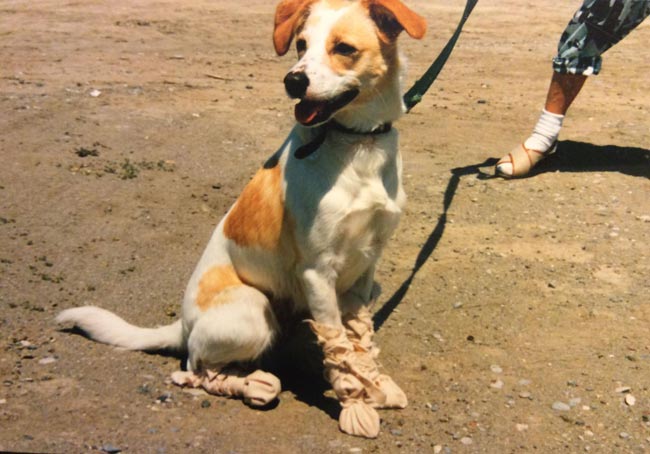 Asuessani Kreikassa löysin pienen vaaleanpunaisen koiranpennun ja vein sen kiireesti eläinlääkäriin. Lääkärin mukaan pentu oli vain 5 päivän ikäinen tyttö (syntynyt perjantaina 13 päivä) ja painoi vaivaiset 250 g eli hädin tuskin puhelimen kokoinen. Lääkäri sanoi, että jos pennulta jää ruokintakerta väliin, se heikkenee nopeasti ja mahdollisuus selvitä pienenee. Ostin orpopentujen maitojauhetta ja pienen tuttipullon, jonka täytin heti vedellä ja jauheella. Yritin lämmittää juomaa käsissäni kädenlämpöiseksi, mutta pentu värisi kuitenkin juodessaan viileää nestettä. En ollut koskaan näin pientä elävää hoitanut.